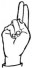 На ћирилици написано БЛАЖА СЛЕПЧЕВИЋ састоји се из 14 слова [?]. Исписано ћириличном једноручном азбуком за глувонеме: